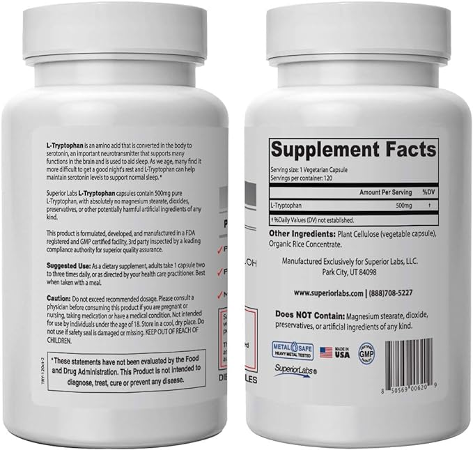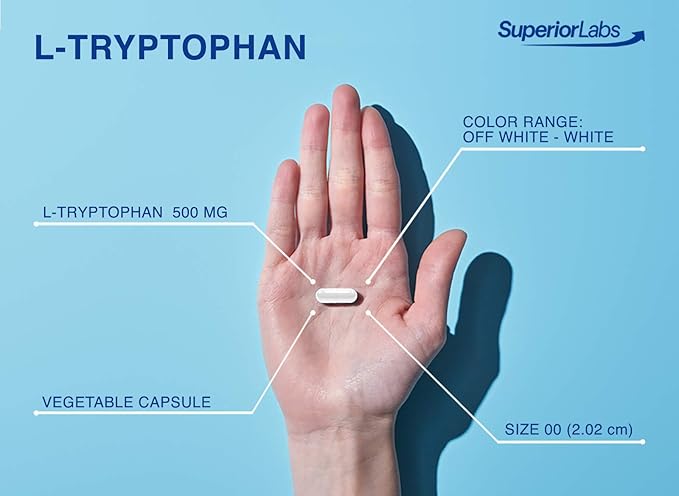 Superior Labs – Pure L-Tryptophan – 500mg, 120 Vegetable Capsules – Non-GMO Dietary Supplement for Restful Sleep & Relaxation – Supports Feelings of Well Being and Healthy Circulation Circulation