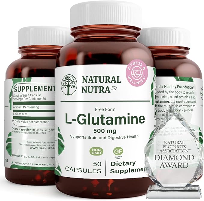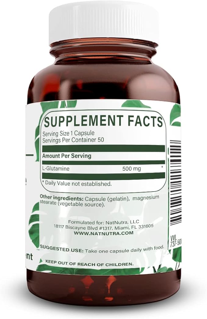 Natural Nutra L Glutamine, Helps to Promote Optimal Brain Functioning, Muscle Health and Boost Memory and Focus, 500 mg 50 Capsules