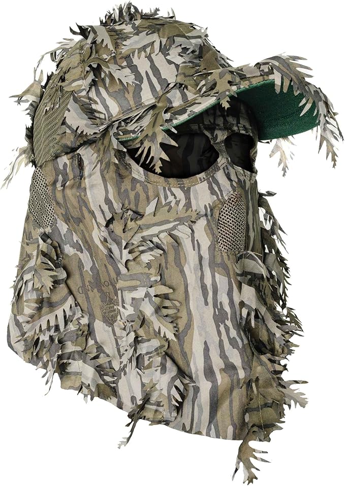 - BLEND INTO SURROUNDINGS - Officially licensed Mossy Oak leafy camo face mask hunting hat. Designed in the USA by hunters, for hunters. Double-sided print leaf shape acts like natural leaves. Camo facemask for hunting with no fog mesh for glasses