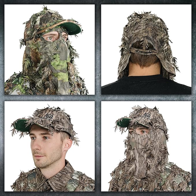 - TUCK AWAY FACE MASK - 3D camo hat mask combination that allows you to drop down and tuck away when required. The ultimate option in turkey hunting hats, and with the one size fits most it's the perfect camo face mask for the kids hunting gear set