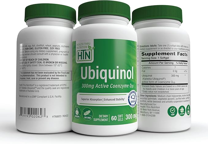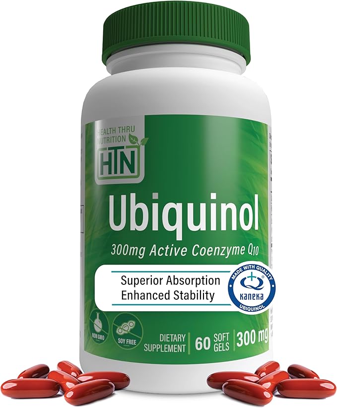 Health Thru Nutrition Ubiquinol 300mg 60 Softgels as Kaneka QH Reduced CoQ-10 | Stabilized - 3rd Party Tested | Enhanced Bioavailability | Cardiovascular & Mitochondria Function Support | Non-GMO