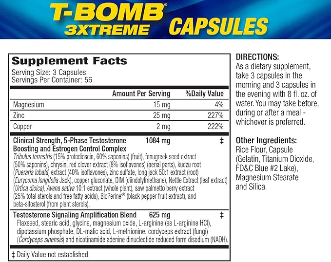 MHP T-Bomb 3xtreme Clinically Tested, Testosterone Booster for Men, Increase Libido, 168 Count