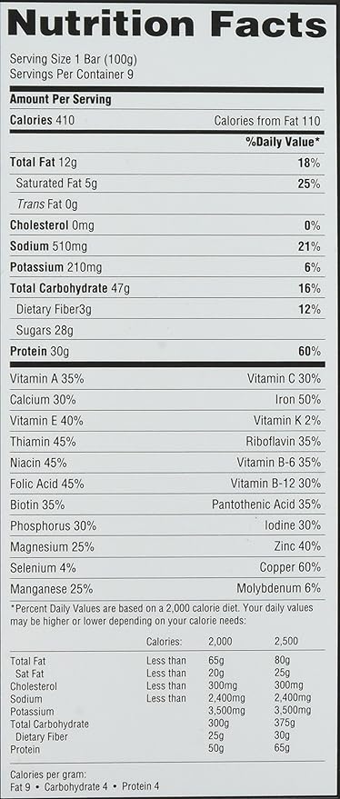- Meal replacement bar is packed with 30 grams of protein for complete hunger satisfaction