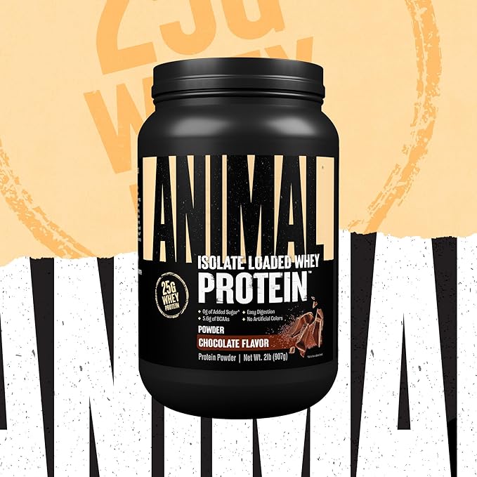 Animal Whey Isolate Protein Powder - Loaded for Pre & Post Workout Muscle Builder and Recovery with Digestive Enzymes for Men & Women - 25g Protein, Great Taste, Low Sugar - Chocolate 2 lbs