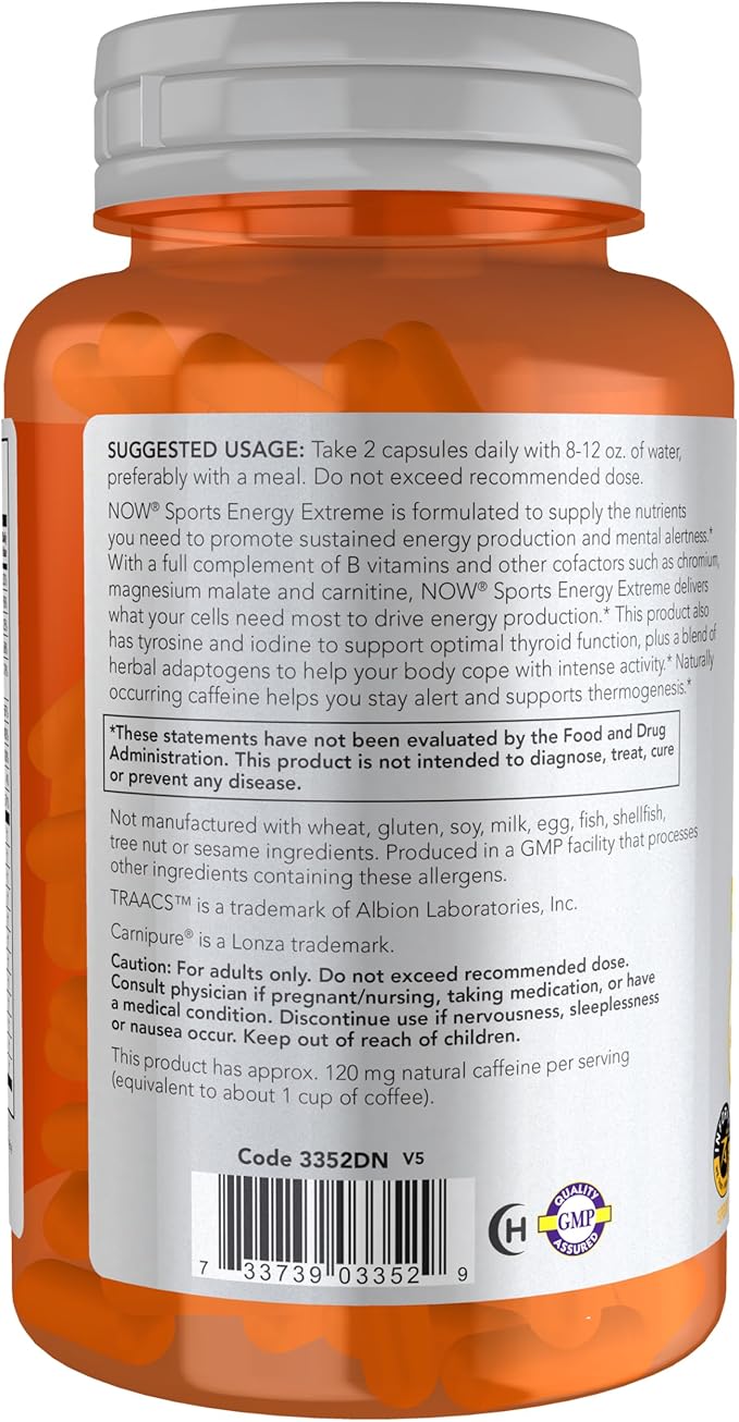 NOW Foods Sports Nutrition, Sports Energy Extreme with B Vitamins and other cofactors such as Chromium, Magnesium Malate and Carnitine, 90 Veg Capsules