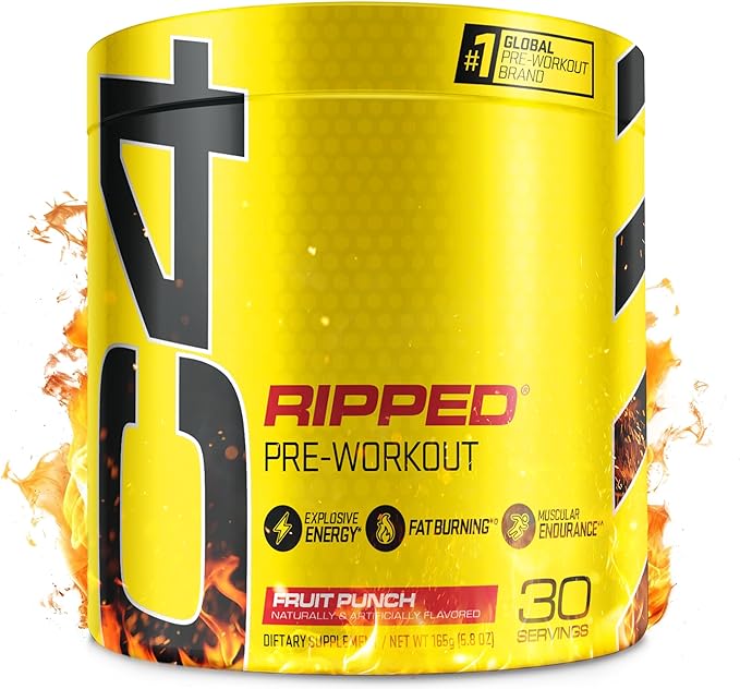 Cellucor C4 Ripped Pre Workout Powder Fruit Punch - Creatine Free + Sugar Free Preworkout Energy Supplement for Men & Women - 150mg Caffeine + Beta Alanine + Weight Loss - 30 Servings