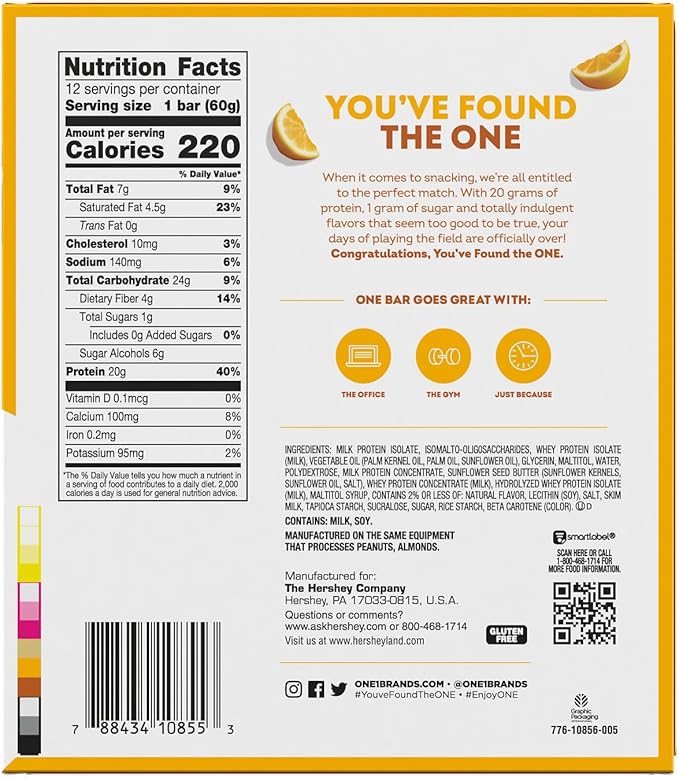 - THE ONE PROTEIN BAR: Discover all the mouthwatering, high-protein bars from ONE! Whether you're craving our classic core flavors, limited-edition options, or even a Hershey's ONE Reese's Peanut Butter Lovers Bar, weve got something for every taste. Packed with protein and flavor, these bars are perfect for fueling everyday. Try them all and find your next pantry staple today!