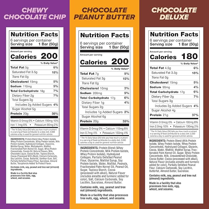 - NEW LOOK! You will receive one 18 ct box of Pure Protein Bars, Variety Pack (Chocolate Peanut Butter 6ct, Chocolate Deluxe 6ct and Chewy Chocolate Chip 6ct), 1.76 oz
