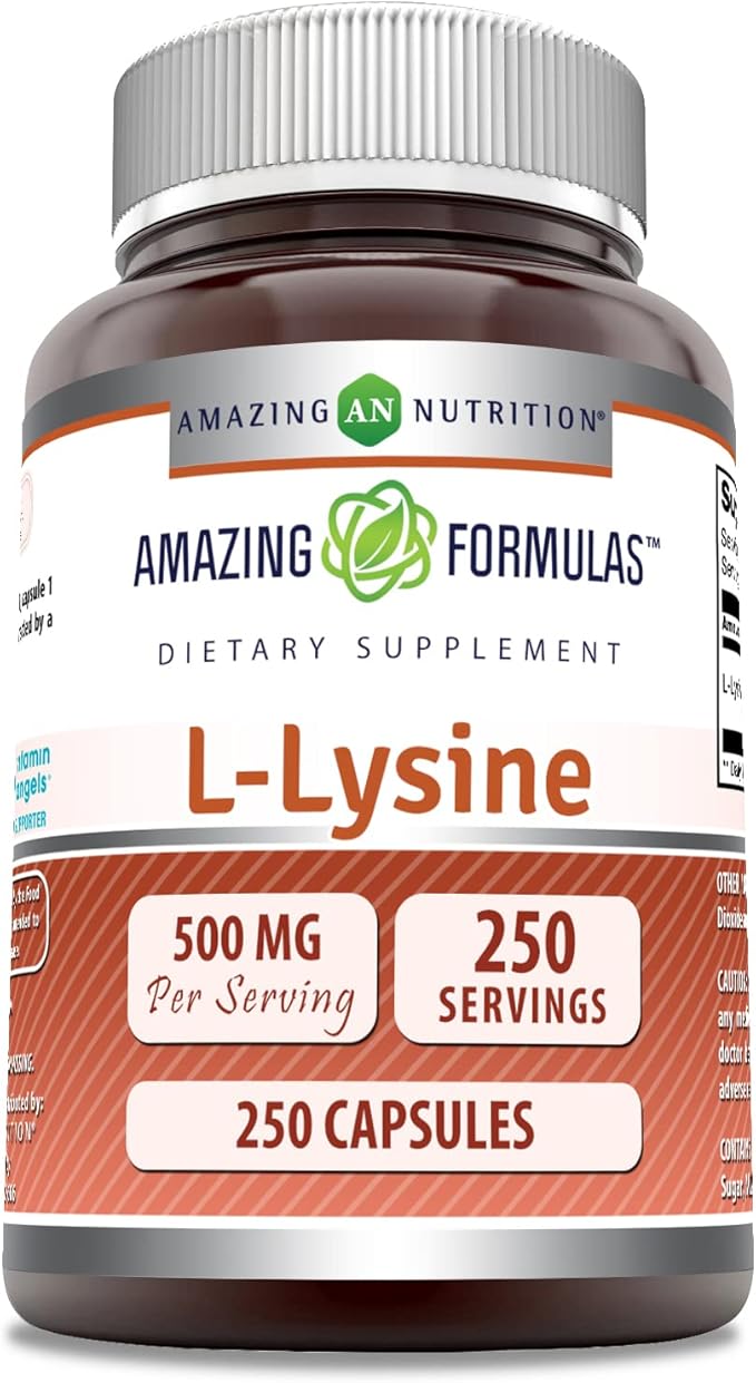 Amazing Formulas L-Lysine 500mg 250 Capsules Amino Acid Supplement | Non-GMO | Gluten Free | Made in USA