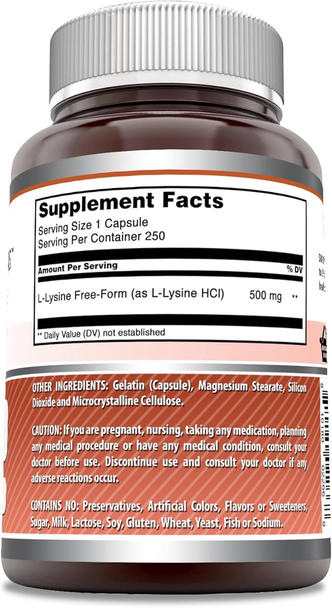 - L-Lysine Amino Acid Vitamin 500mg Per Serving Supplement