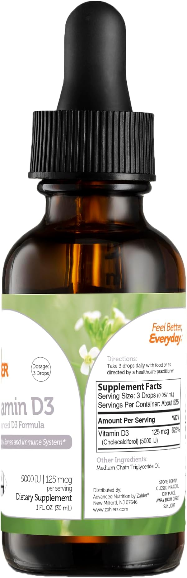 Zahler Liquid Vitamin D3 5000 IU Liquid Drops - Vitamin D3 Liquid Drops for Adults Bone & Immune Health - Liquid D3 Vitamin D - Liquid Vitamin D Drops - Vitamin D Supplements for Women & Men (1 fl oz)