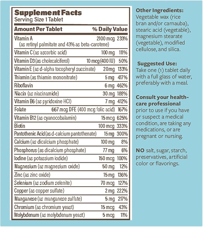 - SUSTAINED-RELEASE MULTIVITAMIN WITHOUT IRON: Daily multivitamin specially formulated without iron to support the nutritional needs of men and postmenopausal women, who generally do not require iron supplementation.*