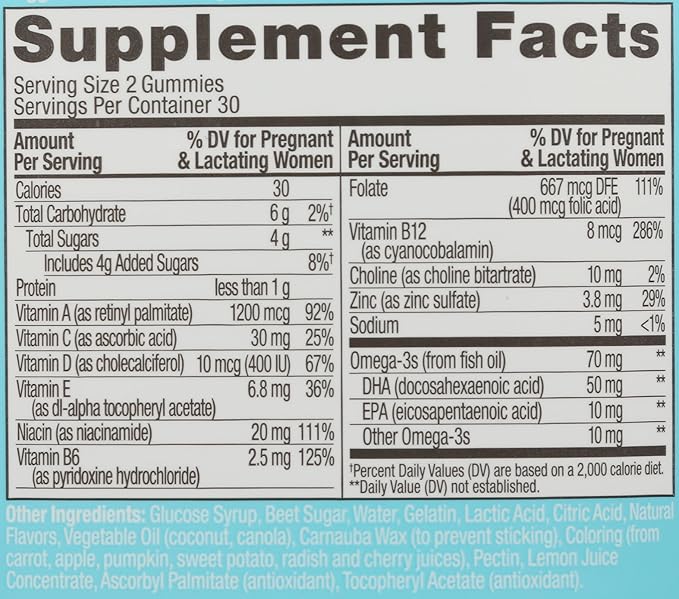 - DELIGHTFULLY TASTY: OLLY prenatal multi vitamin gummies come in a belly-friendly blend of delicious raspberry flavor and citrus flavors, made with no synthetic colors or flavors and are gluten free No iron added; iron can cause stomach upset