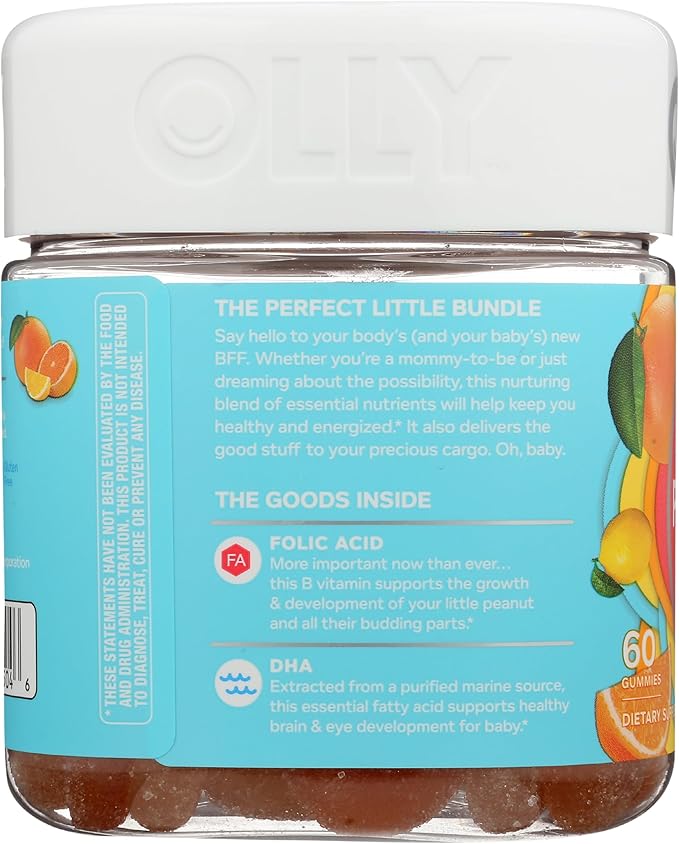 - OLLY PRENATAL FOLIC ACID + DHA: Whether it’s before or during your pregnancy, this nurturing blend provides key nutrients to help support your overall wellness so you can deliver the good stuff to your precious cargo*