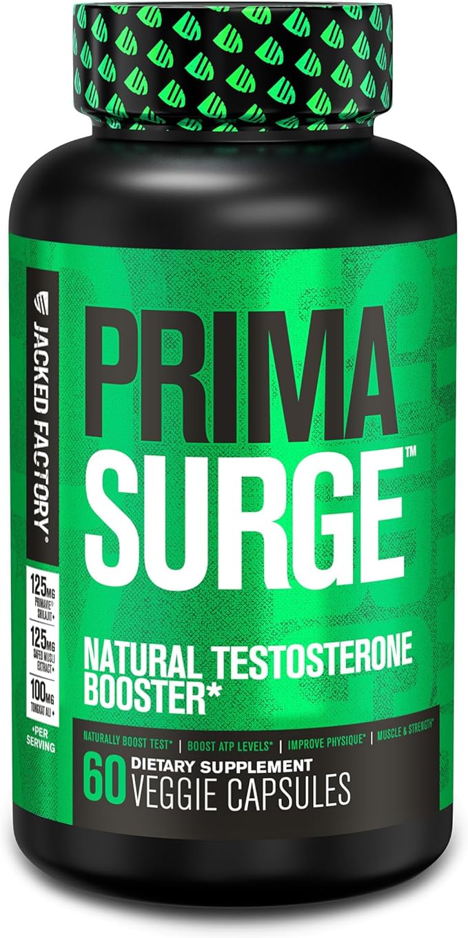 Jacked Factory Testosterone Booster for Men PRIMASURGE - w/Tongkat Ali, PrimaVie, Ashwagandha - Boost Vitality, Muscle Growth & Energy | Natural Test Booster Supplement - 60 Veggie Pills