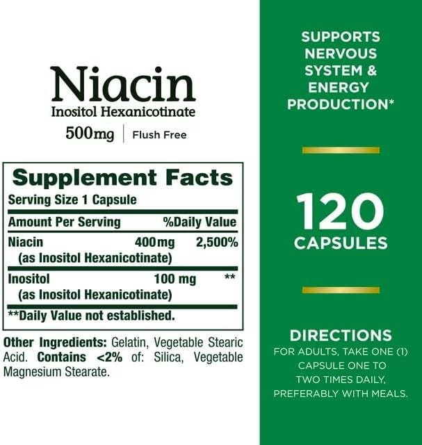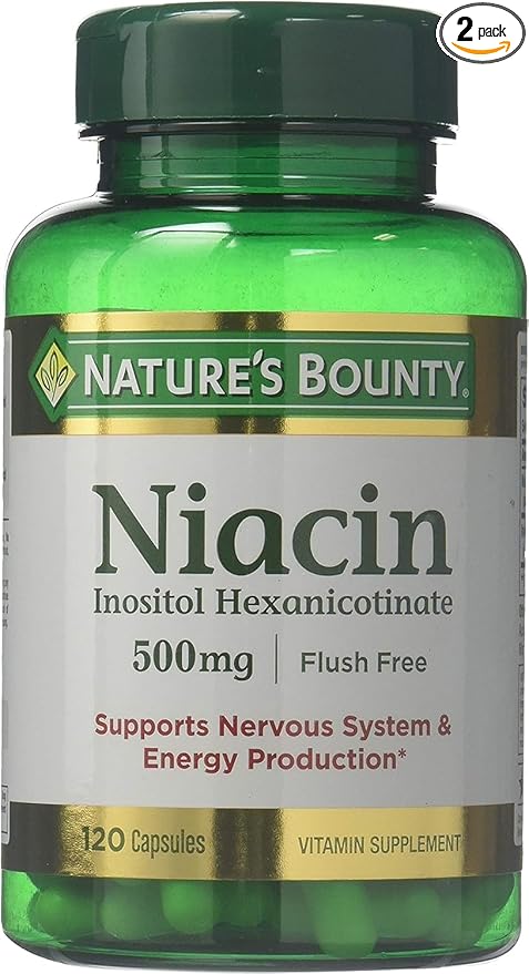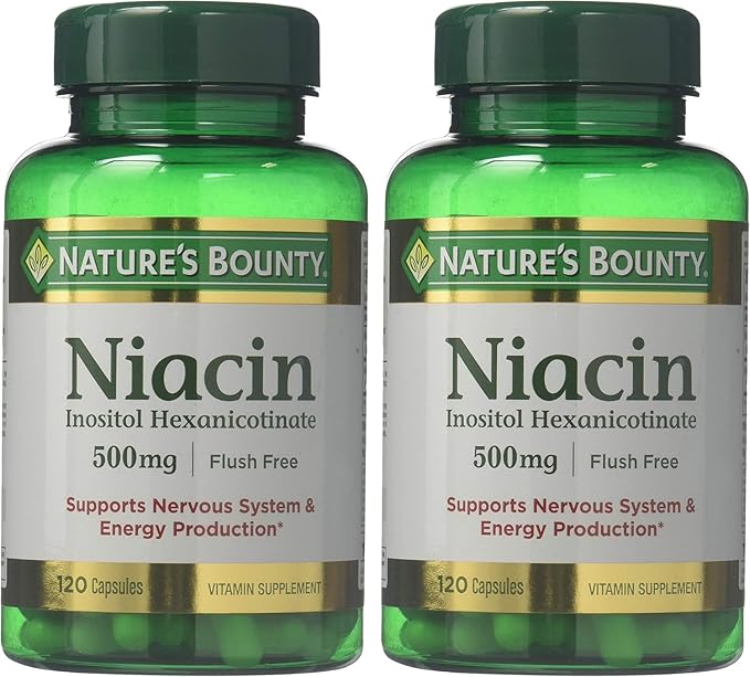 Nature's Bounty Flush Free Niacin 500 Mg, 240 Capsules (2 X 120 Count Bottles)