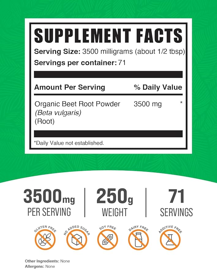 BulkSupplements.com Organic Beet Root Powder - Beet Powder Organic, Beetroot Supplement - Superfood Supplement, Vegan & Gluten Free - 3500mg per Serving, 250g (8.8 oz) (Pack of 1)