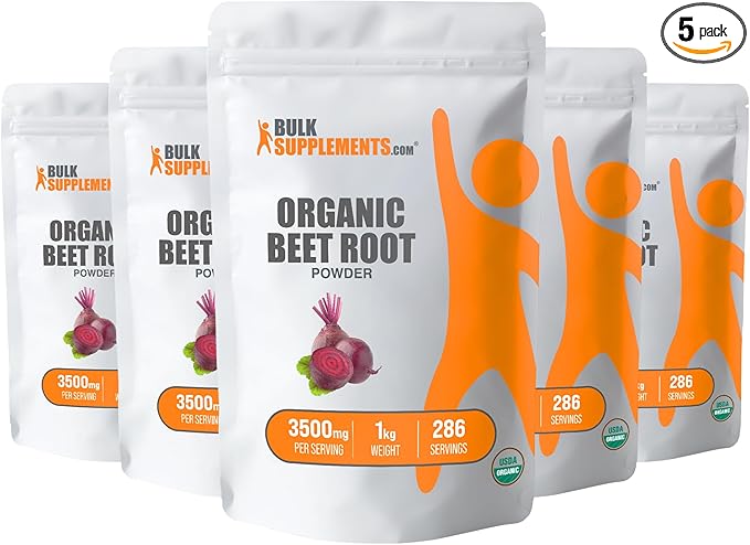 BulkSupplements.com Organic Beet Root Powder - Beet Powder Organic, Beetroot Supplement - Superfood Supplement, Vegan & Gluten Free - 3500mg per Serving, 5kg (11 lbs) (Pack of 5)