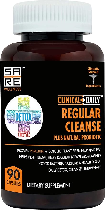 Clinical Daily Regular Cleanse. Natural Colon Cleanser & Detox for Energy and Constipation Relief. 90 Herbal Dietary Fiber Pills - Psyllium Husk Powder Capsules with Glucomannan, Aloe, PROBIOTICS