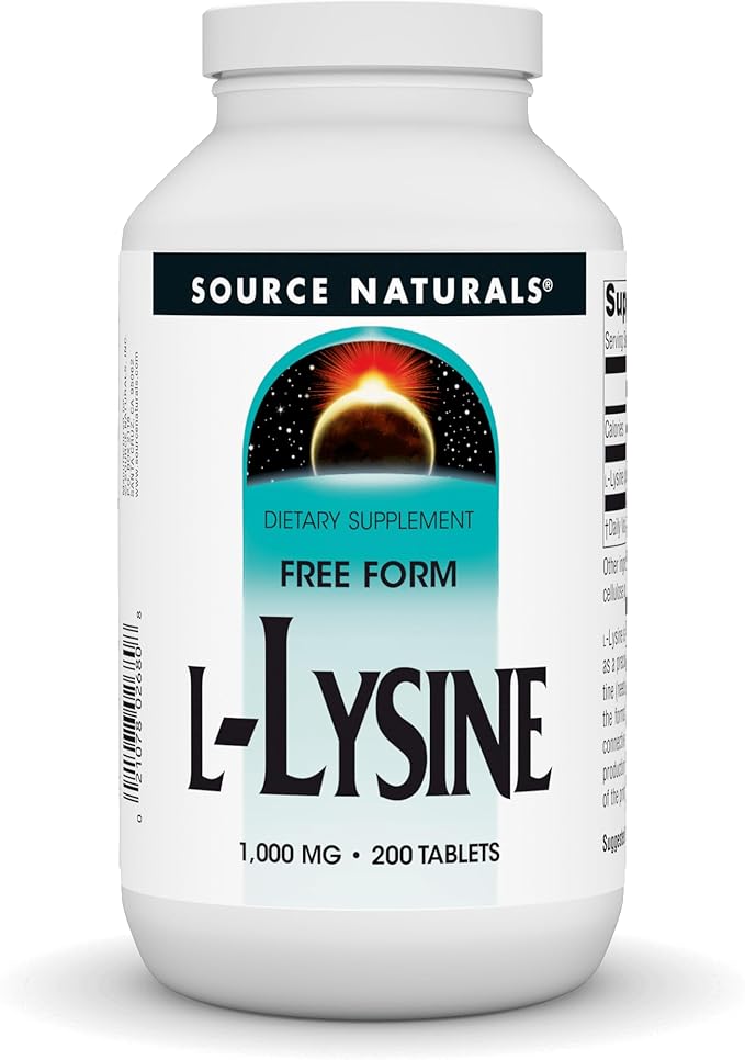 Source Naturals L-Lysine Free Form, 1000 mg - Amino Acid Supplement Supports Energy Formation & Collagen - 200 Tablets