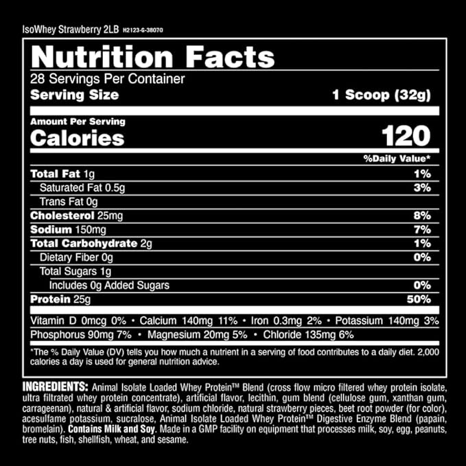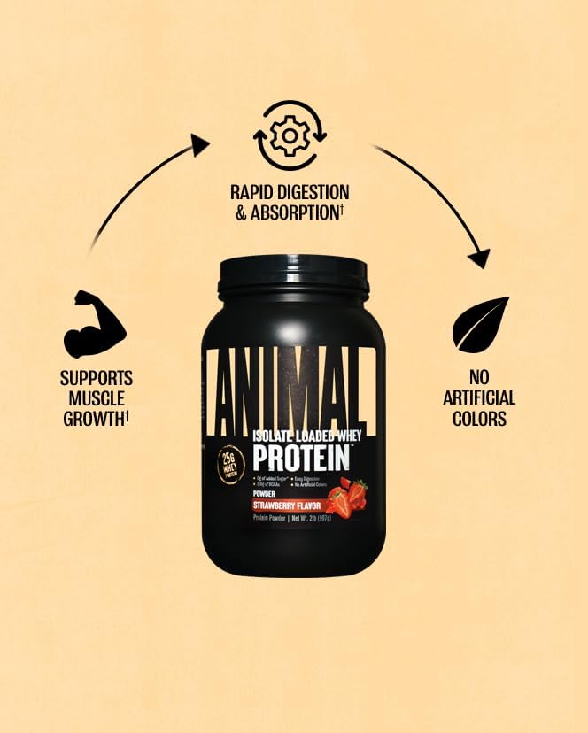 Animal Whey Isolate Protein Powder - Loaded for Pre & Post Workout Muscle Builder and Recovery with Digestive Enzymes for Men & Women - 25g Protein, Great Taste, Low Sugar - Strawberry 2 lbs