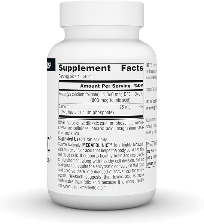 - Source Naturals MegaFolinic is a highly bioavailable source of folic acid that helps the body build healthy red blood cells. It supports healthy brain and neurological development along with healthy cell division.