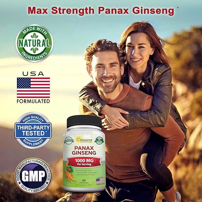 aSquared Nutrition Natural Korean Panax Ginseng (1000mg Max Strength)-90 Capsules Root Extract Complex (Red & White), High Dosage Ginsenosides in Seeds, Asian Powder Supplement,Tablet Pills for Energy