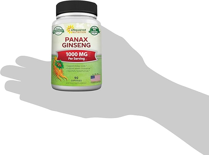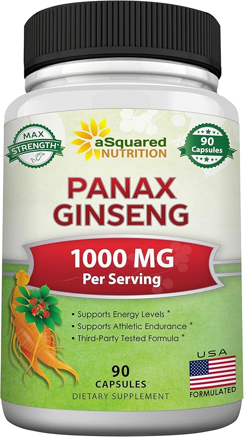 aSquared Nutrition Natural Korean Panax Ginseng (1000mg Max Strength)-90 Capsules Root Extract Complex (Red & White), High Dosage Ginsenosides in Seeds, Asian Powder Supplement,Tablet Pills for Energy