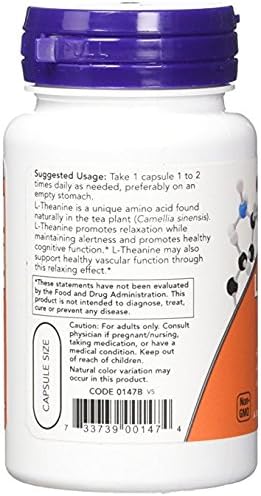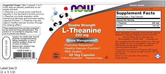 NOW Foods L-Theanine 200 mg, 60 Vegetable Capsule (2 Pack)