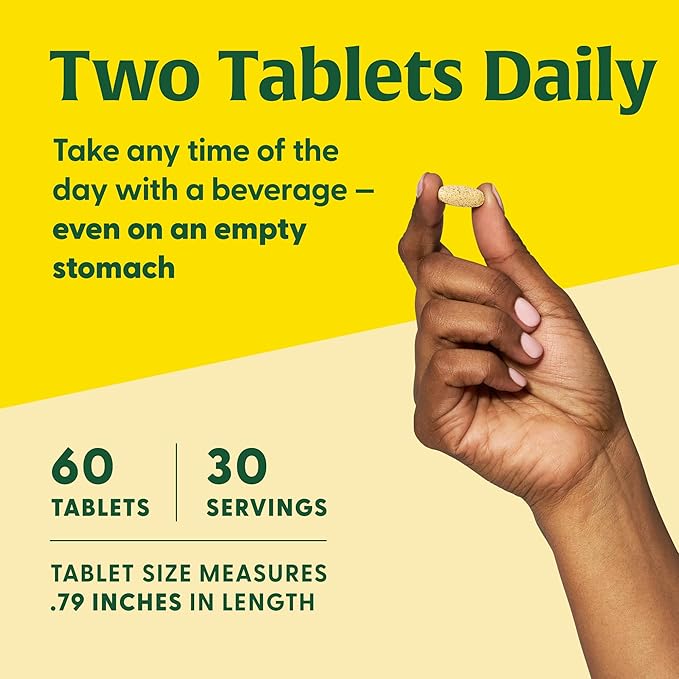 - Can be taken any time of day, even on an empty stomach. 2 tablets daily