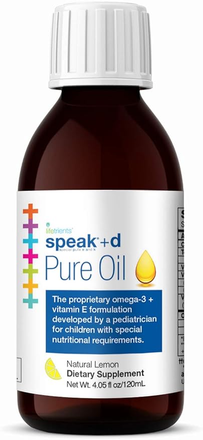- Speak+d Pure Oil includes precise serving ratios of seven nutrients to support children with special nutritional requirements