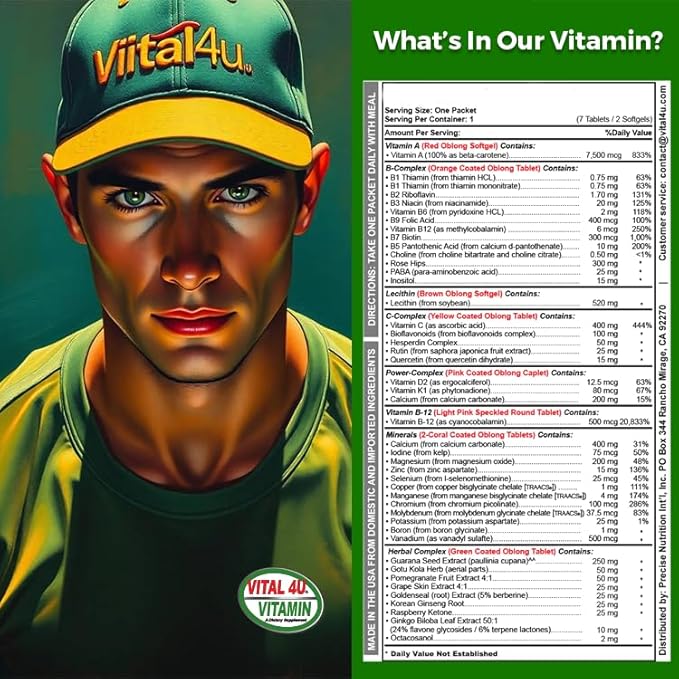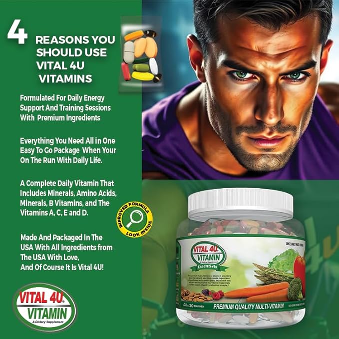 VITAL 4U® Vitamin Essentials - Daily Multivitamin for Both Men and Women, Immune Support, Multimineral Formula - 30 Servings