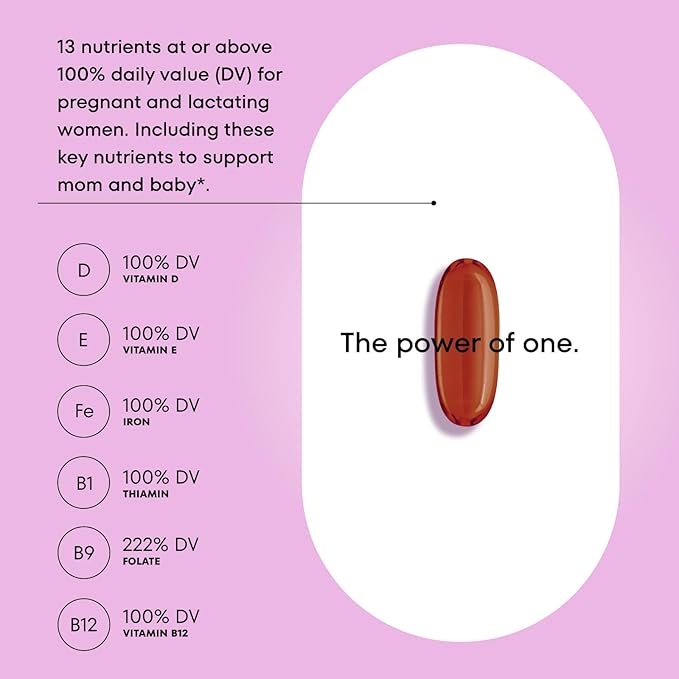 • With key nutrients, like folic acid, DHA, iron and calcium all in one single soft gel