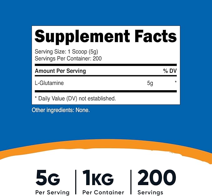 - 1KG (2.2lbs) of L-Glutamine Powder Per Bottle