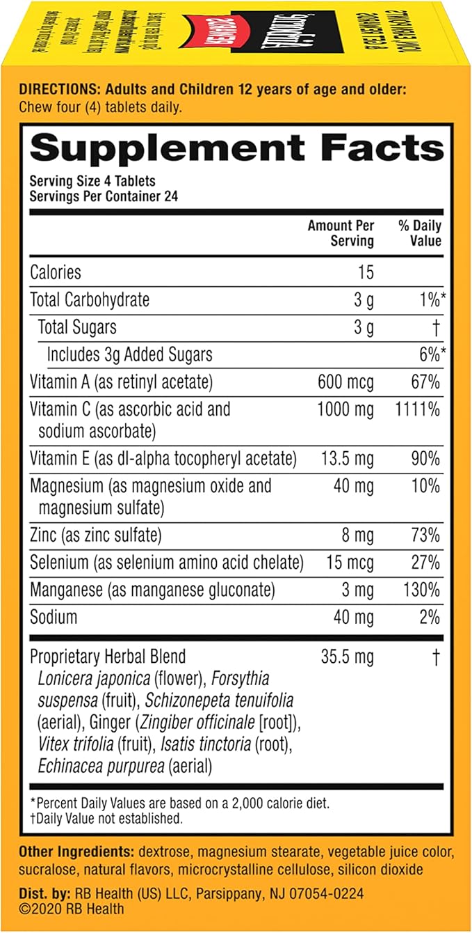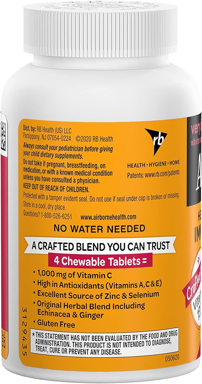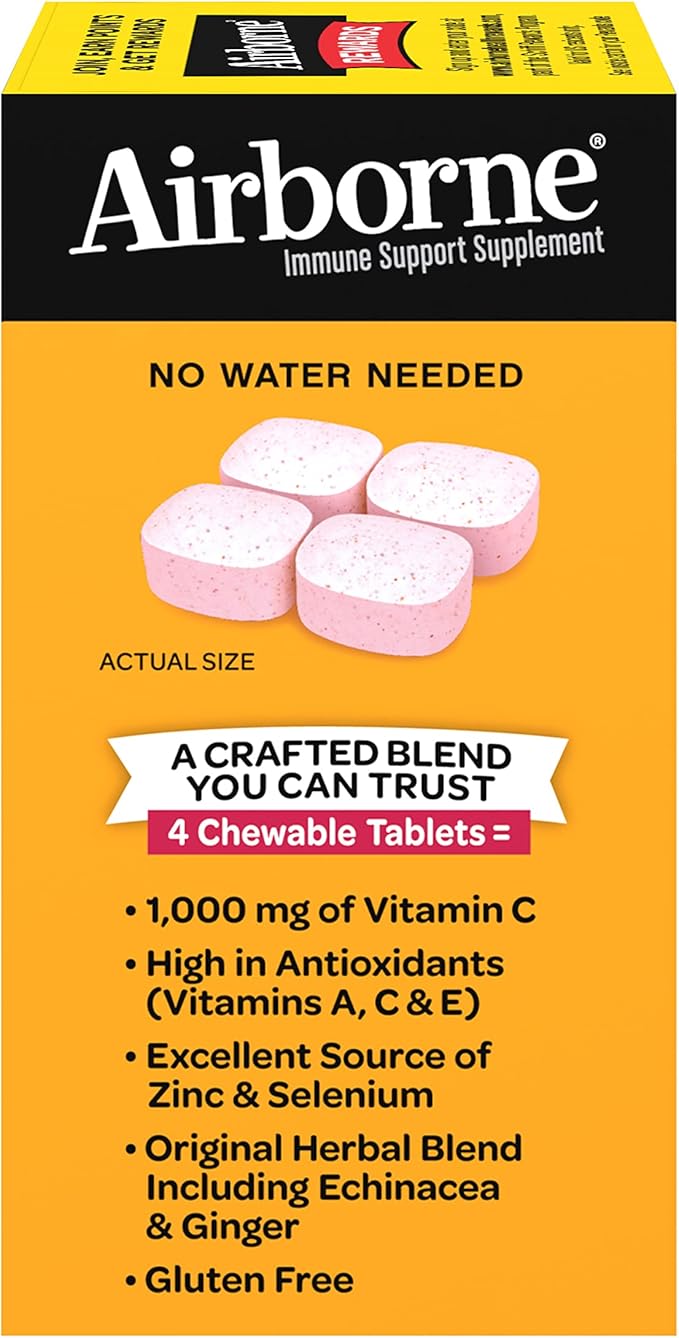 - VITAMIN C 1000mg: Airborne Vitamin C chewable Zinc tablets are packed with 1000mg Vitamin C per serving, which helps support your immune system.*