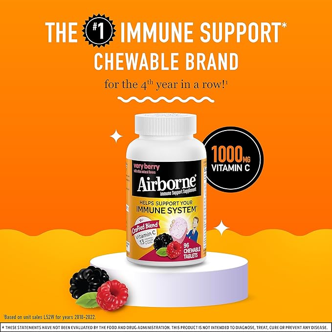 - #1 IMMUNE SUPPORT CHEWABLE BRAND: Airborne is the #1 Immune Support Gummy, Effervescent & Chewable Brand.1 Don’t take our word for it, check out our 5-star rating and read our customer reviews.
