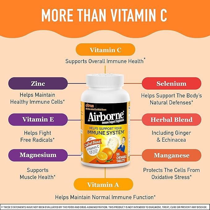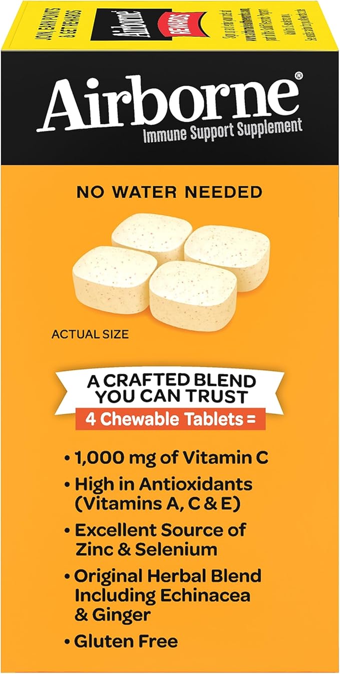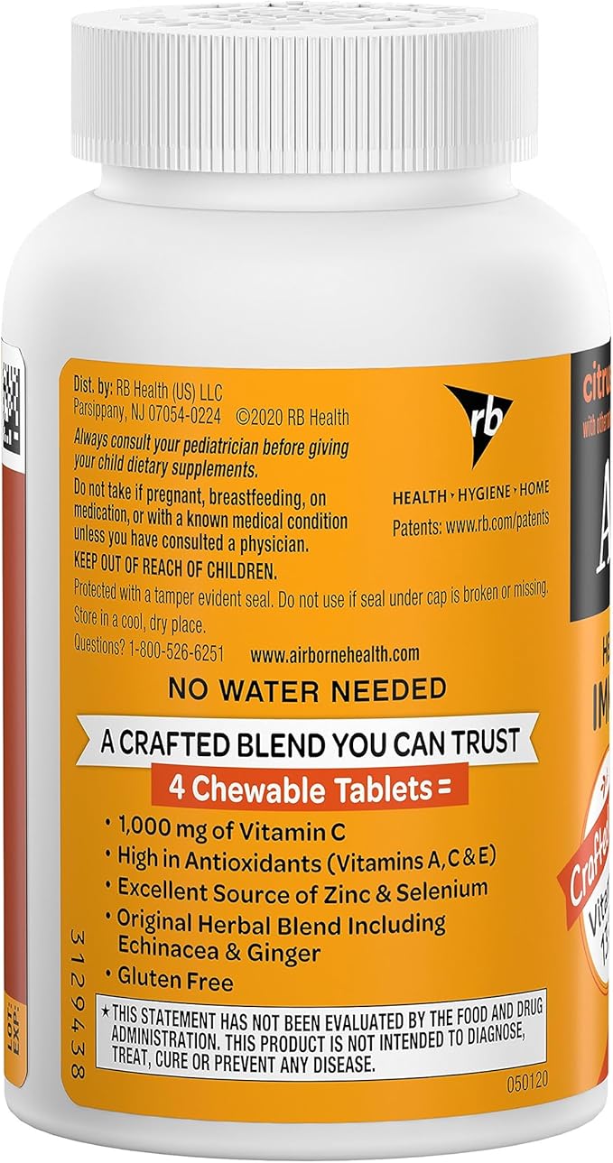 - WHY TO TAKE AIRBORNE: Airborne is the #1 Pharmacist Recommended Brand in Immune Support. These tablets are convenient for you & easy to take on the go, especially while traveling. Vitamin C is among the most important antioxidants in immune health.*