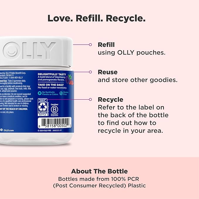 - NEW AND IMPROVED FLAVOR AND TASTE: We heard you, so we improved the formula to have better taste and smell. Not to worry, the same OLLY goodness is still inside each gummy.