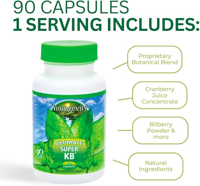 Youngevity Super KB - Proprietary Urinary Tract Health Supplement - Cranberry, Bilberry, Devil's Claw, Horsetail & More - Ancient Legacy - 90 Capsules