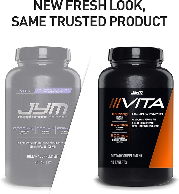 Vita JYM Sports Multivitamin & Mineral Support, Vitamin A, C, B6, B12, E, K, Boron, Biotin, Potassium | JYM Supplement Science | 60 Tablets