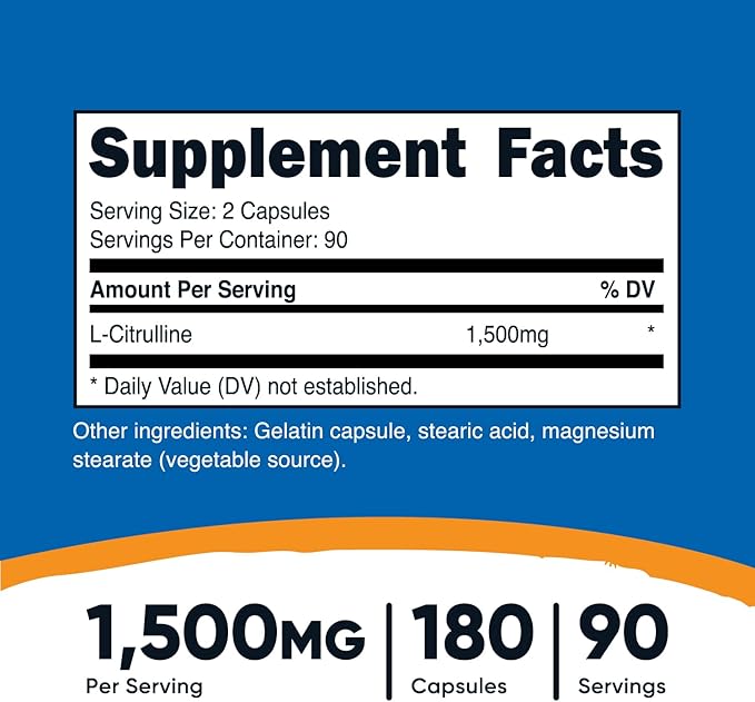 - 750mg of L-Citrulline Per Capsule (90 Servings)