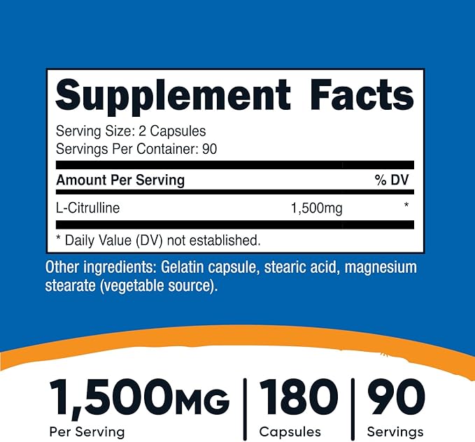- 750mg of L-Citrulline Per Capsule (90 Servings)