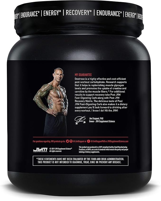 - MORE MUSCLE - Replenishing muscle glycogen stores as quickly and fully as possible after an intense workout is paramount to maximizing muscle recovery and thus muscle growth and strength. This is the sole purpose of Post JYM fast carbs.