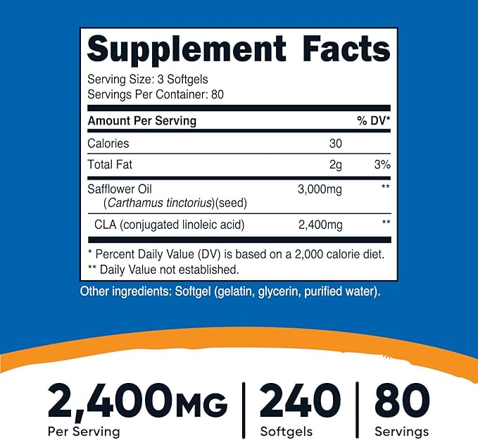 Nutricost CLA (Conjugated Linoleic Acid) 2,400mg, 240 Softgels - Gluten Free, Non-GMO, 800mg Per Softgel