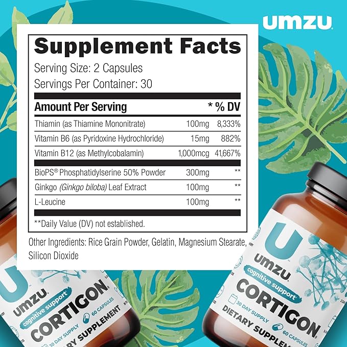 UMZU CORTIGON Cortisol Manager Supplement | Natural Stress Support Complex with Ginkgo Biloba, Phosphatidylserine, B Vitamins | Memory, Focus & Mood Aid (30 Day Supply | 60 Capsules)