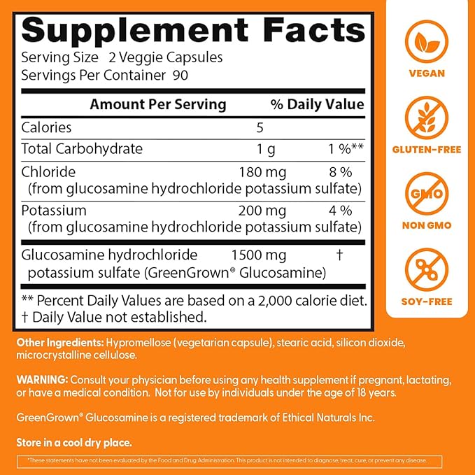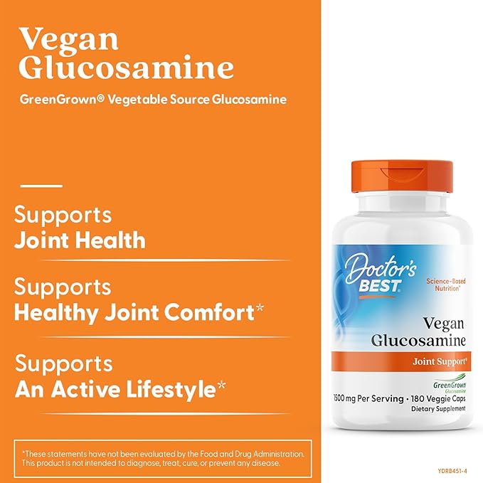 Doctor's Best Vegan Glucosamine Sulfate, Joint Support, Non-GMO, Vegan, Gluten Free, Soy Free, 750 mg 180 Veggie Caps (Pack of 1)