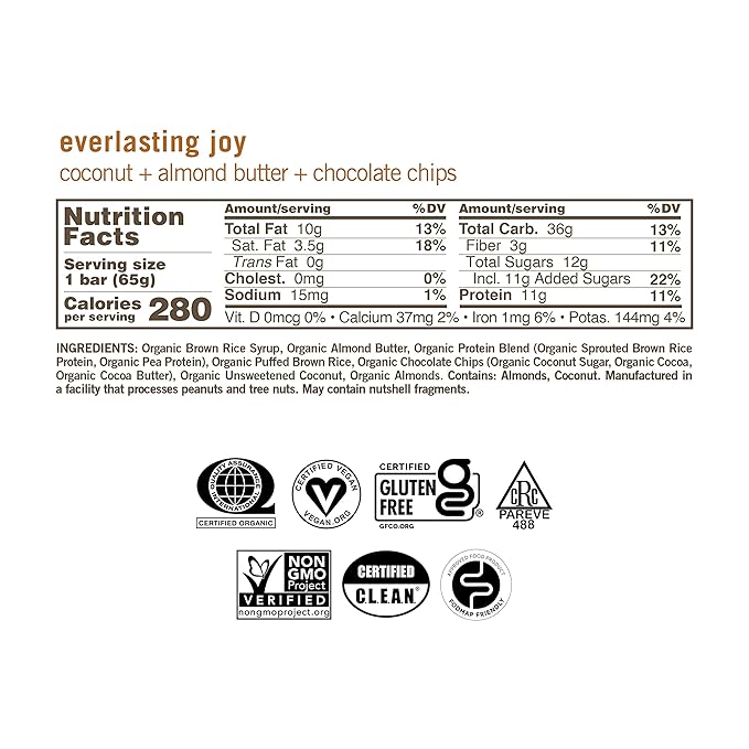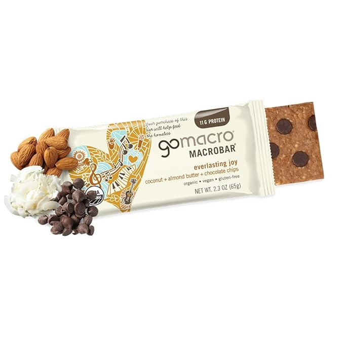 - HEALTHY INDULGENCE: Reminiscent of your favorite candy bar, this fan-favorite MacroBar offers a perfect balance of organic coconut, vegan dark chocolate chips, creamy almond butter, and 11 grams of plant-based protein to fuel your day.