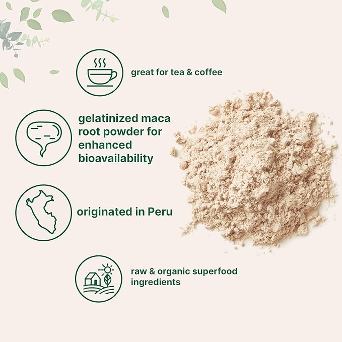 - Gelatinized Peruvian Maca Root Powder Organic, 2 Pound (32 Ounce), Best Superfoods for Adding to Coffee, Tea and Drinks, No GMOs and Vegan Friendly