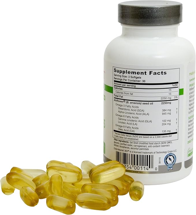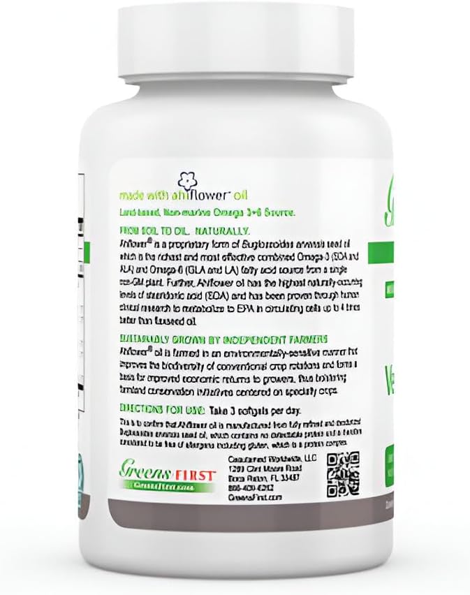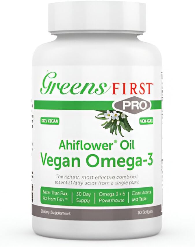 Greens First PRO Ahiflower Oil Vegan Omega-3-2250 mg - Contains Omega-3 Stearidonic Acid SDA - Gamma Linolenic Acid GLA - No Soy or Corn Oil - Non-GMO - 30 Day Supply