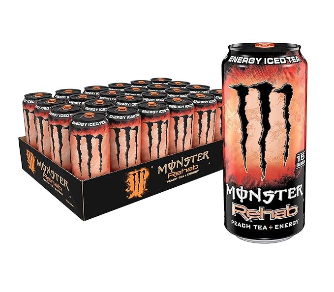 - STOCK UP WITH A 24 PACK | For those looking for a cool-brewed, non-carbonated energy drink, Monster Rehab Peach Tea + Energy is available in a convenient pack of 24.